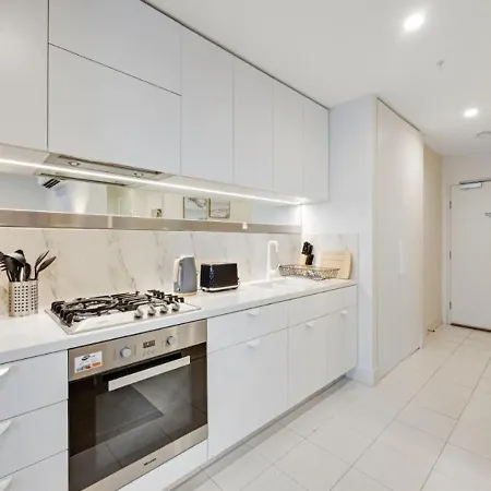 The apartment comprises a fully furnished kitchen for self-catering. The property is a few steps from A'Beckett Street/Queen Street bus stop.